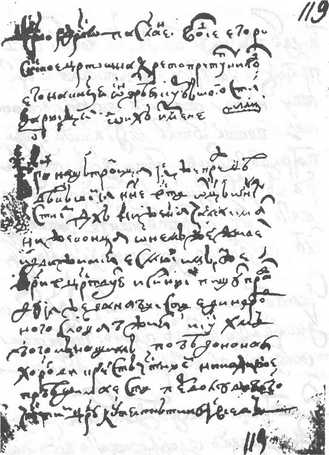Рис. 5.27. Первое послание Грозного (Кей-Кавуса). Список ЦГВИА, ф. ВУА, № 3. ч. 1, л. 119. Взято из [651], вклейка между с. 64–65.