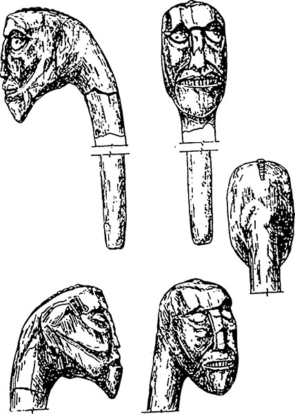 И даже собственно половцы, на которых возлагал такие надежды Голубовский, оставили достаточно внятные свидетельства своей внешности – в виде каменных скульптур, известных, как «половецкие бабы». Невзирая на название, они зачастую изображают усатых мужчин – и у мужчин этих почти всегда ясно можно разглядеть ниспадающие из-под тюбетейки до пояса косы, как правило – несколько. И даже на венгерских миниатюрах половцы, в большинстве – но не все! – действительно безбородые, неукоснительно изображаются с длиннейшими волосами или косами, без намёка на подобие причёски Святослава[185].