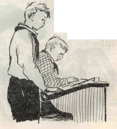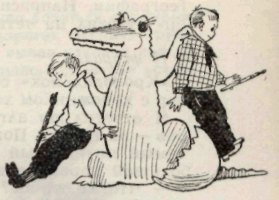Там был изображён «Крокодилёнок», державший за шиворот двух мальчишек: одного - круглого, как шар, другого - длинного с оранжевыми волосами. Сама же заметка была написана в форме диалога: