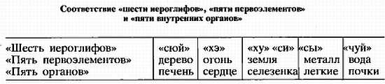 I. «Шесть иероглифов», «пять первоэлементов» и «пять внутренних органов»