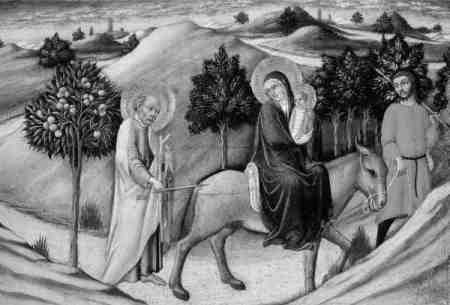 Рис. 1.50. Бегство Святого Семейства в Египет. Сано ди Пьетро. Якобы середина XV века. Ватикан. Взято из [713], с. 121, илл. 104.