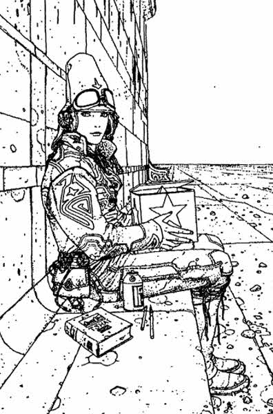 Жан Жиро родился в 1938 году в парижском пригороде, детство провел у бабушки с дедушкой, листая альбомы великого графика XIX века Гюстава Доре, в 16 лет начал посещать Академию изящных искусств и тогда же опубликовал свои первые иллюстрации… Академию он закончил, но дорога традиционного художника его не привлекла. Когда будущему иллюстратору исполнилось семнадцать, он купил билет на самолет и отправился в Мексику, где провел восемь месяцев. В Париж он вернулся совсем другим человеком: Жан увидел прерию и был ею буквально пленен…