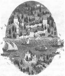 Рис. 8.41. Миниатюра, показывающая обе крепости — Румели-Хисар и Анатоли-Хисар на берегах Босфора, в его самом узком месте. Взято из Интернета.