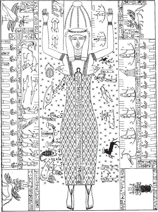 Рис. 27. Изображения планет на Зодиаке с внутренней стороны крышки фивского саркофага, найденного Г. Бругшем.