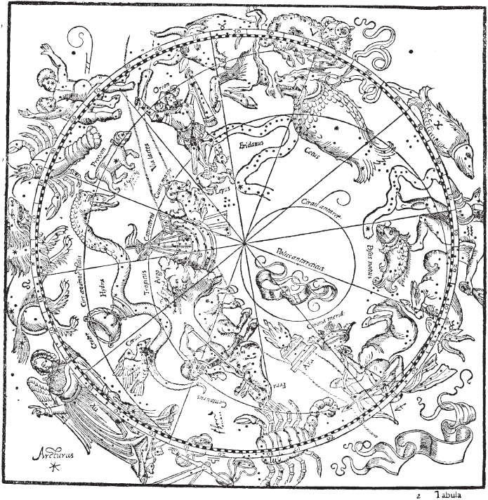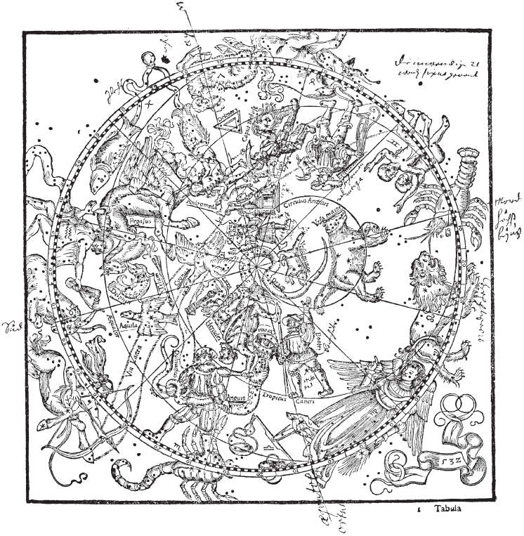 Может быть, словесные описания — позднейшие вставки? Но в таком случае, как выглядел исходный текст? Ответа на этот вопрос мы, очевидно, не получим. Издания 1515, 1528 годов и более поздние вышли в свет, когда уже существовали гравюры Дюрера; издание же якобы 1496 года, насколько нам известно, вообще не содержит звездного каталога.