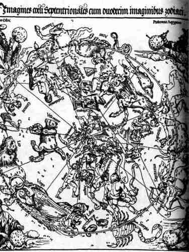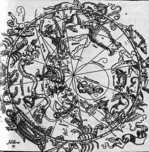 АСТРОНОМИЧНОСТЬ ЕГО ОБРАЗОВ ДЕЙСТВИТЕЛЬНО БРОСАЕТСЯ В ГЛАЗА, ОСОБЕННО ПРИ СОПОСТАВЛЕНИИ СО СТАРИННЫМИ КАРТАМИ ЗВЕЗДНОГО НЕБА БУКВАЛЬНО ПЕРЕПОЛНЕННЫМИ «АПОКАЛИПТИЧЕСКИМИ» ОБРАЗАМИ. См., например, рис. 92.