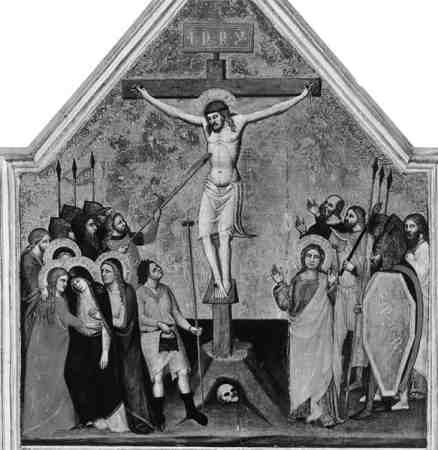 Рис. 2.3. Удар копьем в бок Иисусу. Фрагмент триптиха «Распятие со сценами Страстей Христовых». Ватикан. Взято из [713], с. 63.