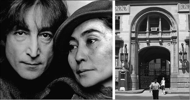 Джон Леннон и Йоко Оно. Справа – место убийства Леннона