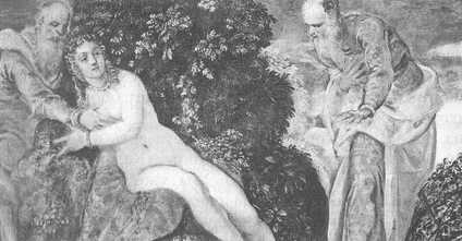 Рис. 5.11. Сусанна (Есфирь) и старцы (Иван Грозный и его сын Иван). Тинторетто (Якопо Робусти). Якобы XVI век. Взято из [493:1], с. 267.
