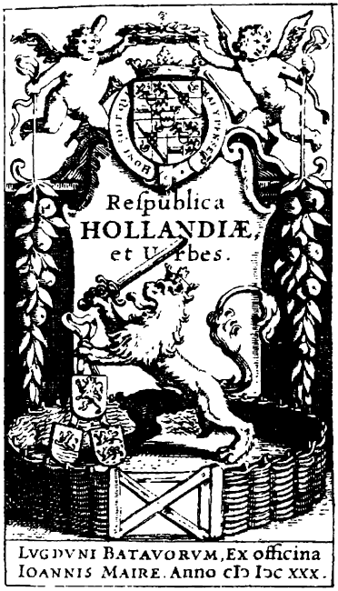 Рис. 121. С правыми и левыми скобками-полумесяцами записана дата 1630 год на титульном листе книги «Республика Голландия». Взято из [35], с. 49.
