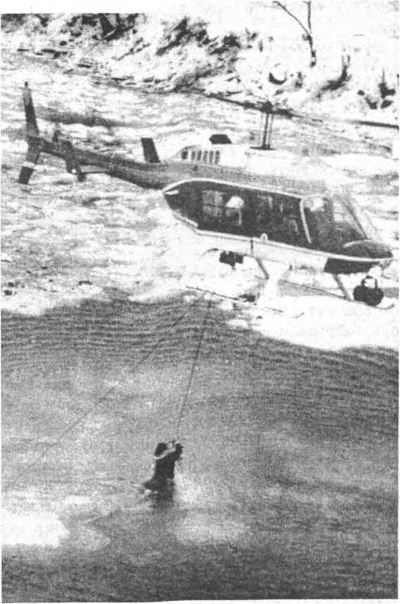 Хвост, раздавив попутно еще один автомобиль, снес ограждение моста и отправился вслед за своей «половиной». Но он не пошел камнем на дно, а какое-то время оставался на плаву. Десятки людей бросились к проломленному парапету с единственным желанием — помочь уцелевшим, вырвать их из ледяного плена. Но черная поверхность реки была неподвижна. И только кипела и пенилась вода над тем местом, где затонули раскаленные двигатели. И вдруг, о чудо! Среди льдин и обломков самолета появились, словно поплавки, шесть голов. По берегу пронесся радостный клич. Самые смелые попытались вплавь добраться до бьющихся в ледяной воде людей. Тщетно. Стужа сводила судорогой руки и ноги, намокшая одежда тянула на дно. Вот одна из голов скрылась среди волн и больше не появлялась. Пятеро еще продолжали бороться за свою жизнь, цепляясь за плавающие обломки и поддерживая друг друга. Их силы таяли с каждой минутой, а вместе с ними уходила и надежда на спасение. Люди на берегу плакали от своей беспомощности. Помощь пришла с неба. Ангел-спаситель, дежурный полицейский вертолет, завис над утопающими. Летчик опустил машину к самой воде, но пальцы несчастных окоченели уже настолько, что просто не могли согнуться и ухватиться за посадочные лыжи вертолета. Тогда второй пилот отважно выбрался на лыжу и, ежеминутно рискуя сорваться в воду, обхватывал спасенных руками и держал так, пока вертолет переносил их на близкий берег. Таким способом было спасено три человека. Двое так и не дождались совсем близкой помощи…