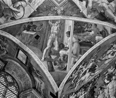Рис. 5.9. «Распятие Амана». Микеланджело. Сикстинская капелла. Взято из [713], с. 324, илл. 294.