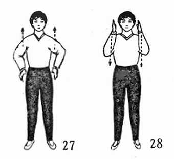 28. Некоторые больные во время занятия невольно думают о больном месте, о том, как то или иное движение благоприятно воздействует на очаг заболевания и с удвоенной энергией их выполняют. Это абсолютно неправильно. Размышления об очаге заболевания есть не что иное, как «сосредоточение мысли», которое может служить препятствием для нормальной циркуляции ци, мешать поступлению ци в очаг заболевания.