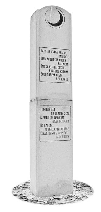 Обелиск с проклятием на месте деревни Сеянтус