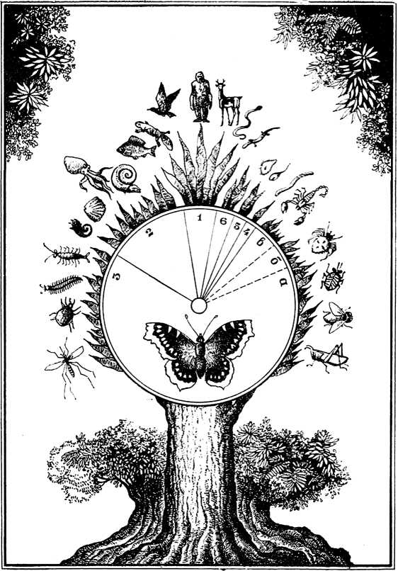 «Древо жизни». Относительное количество видов животных: 1 – хордовые, 2 – моллюски, 3 – членистоногие (а – насекомые, б – паукообразные, в – ракообразные), 4 – черви, 5 – одноклеточные, 6 – прочие