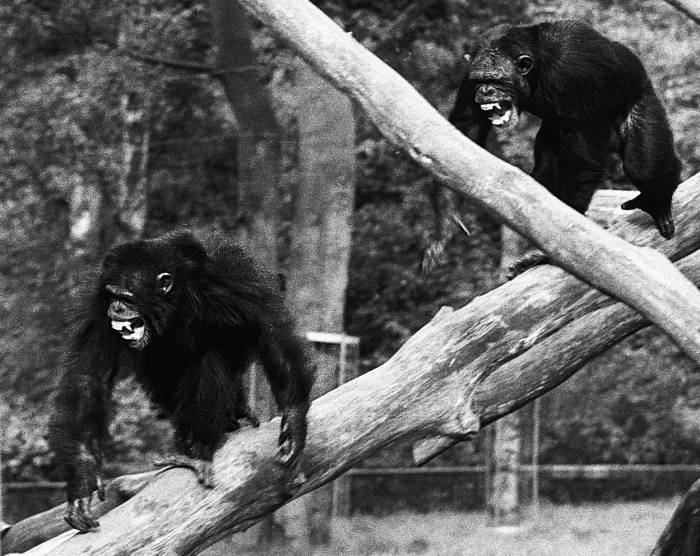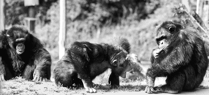 Франс де Вааль наблюдает за группой шимпанзе{62} в зоопарке Бюргерса, Арнем, Нидерланды