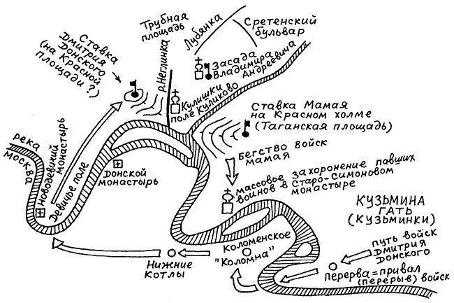 Рис. 5. Наша реконструкция географии Куликовской битвы в Москве.