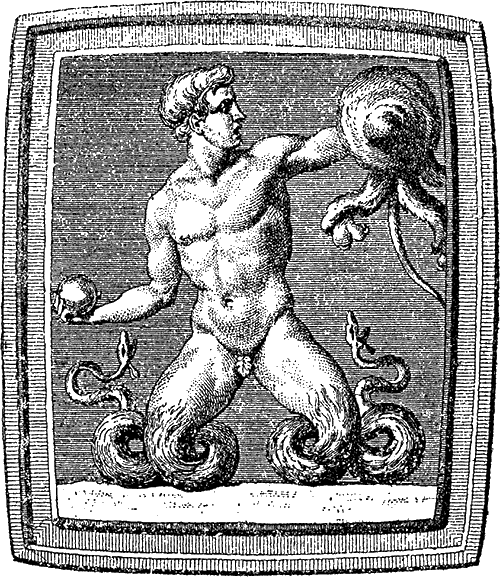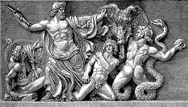 Рис. 6.2. Гигантомахия. Зевс-Юпитер, поражающий молнией гигантов-титанов. «Античная» резьба по камню. Взято из [524:1], с. 30, илл. 18.