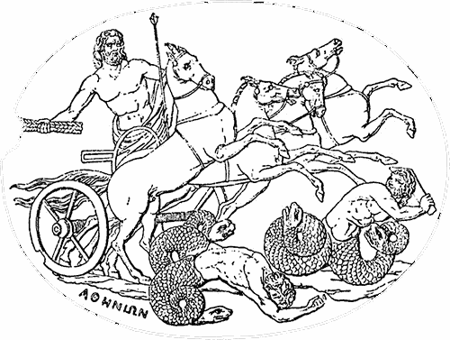 Но смело ринулся на Тифона Зевс-громовержец, и начался бой.