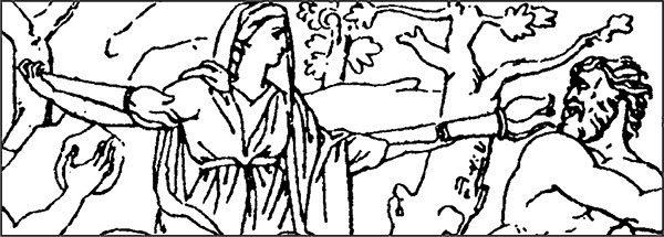 Рис. 6.4. Гигантомахия. Два «факела» в руках богини Гекаты, пламя из которых направлено горизонтально, в направлении ствола факела. Скорее всего, это не обычные факелы, а легкие пушки, мушкетоны или мушкеты. Взято из [524:1], с. 96, илл. 86.