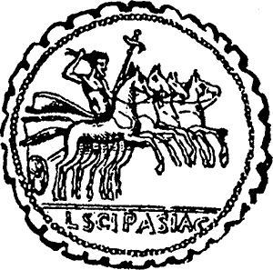 Рис. 6.11. Юпитер-Зевс, поражающий молнией. «Античная» монета. Взято из [524:1], с. 33, илл. 21.
