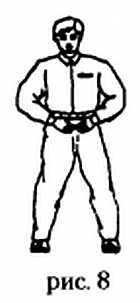 Соединив кисти рук ладонями друг к другу, медленно опустите их к даньтяню и, развернув ладонями внутрь, направьте на даньтянь (рис. 8). В течение двух минут пребывайте в состоянии спокойного сосредоточения на даньтяне.
