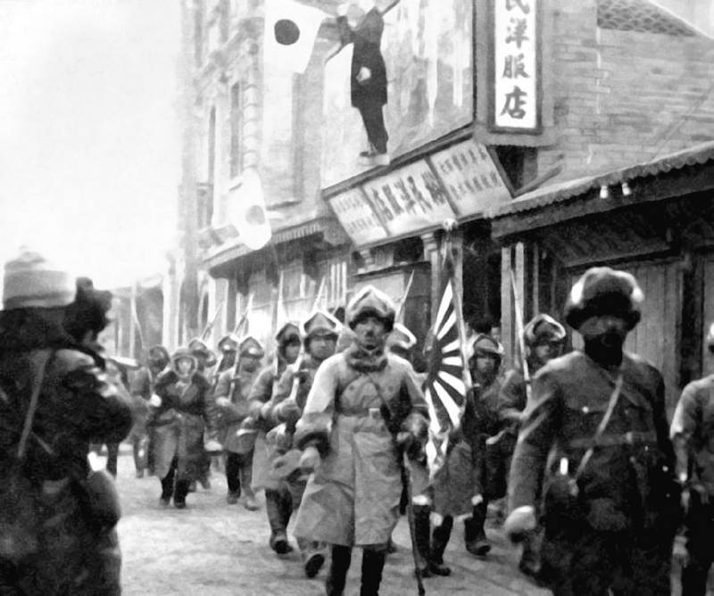 В то время как трудящиеся зарубежных стран протестовали против опасности снижения своего жизненного уровня до жизненного уровня трудящихся Японии, а правительства этих стран вынуждены были вводить высокие государственные пошлины в качестве барьера против японских товаров, дешевых ввиду низкой заработной платы трудящихся Японии, японский империализм начал захват внешних рынков сбыта и сырья с помощью оружия.