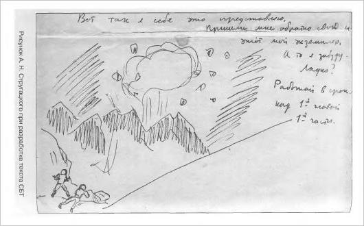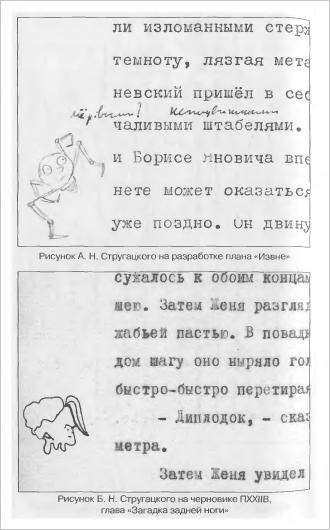 На одной из уцелевших страниц черновика „Пути на Амальтею“ после слов: „Он выбирался вторым и застрял и все-таки лег носом в холодный пол, но быстро пришел в себя и тогда увидел у самого лица ботинок Быкова. Ботинок нетерпеливо притопывал“, — была интересная вставка: „Наверное, это нелегко — притопывать ногой при перегрузке, подумал Жилин. Надо будет попробовать“.