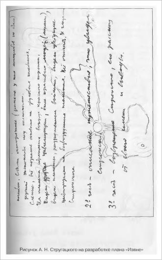 Своеобразное „Двадцать лет спустя“, о тех же персонажах, но через десять, а не через двадцать лет, Стругацкие задумывали сразу же после окончания работы над „Страной багровых туч“. Кроме главных героев, продолжающих жить и действовать в уже знакомом мире, было решено ввести в новую повесть еще одного, который протягивал бы ниточку от „Страны багровых туч“. Это — Николай Ермаков, сын Анатолия Ермакова, погибшего на Венере…