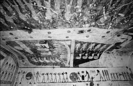 Рис. 7.18. Погребальный зодиак RD фараона Рамзеса IX (Египет, Луксор, Долина Царей). Роспись по штукатурке на сводах погребальной камеры в гробнице фараона. Фотография 2006 года.