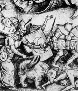Рис. 7.18b. Фрагмент гравюры П. Брейгеля с османским = атаманским полумесяцем. Взято из [1053:1], илл. 13.