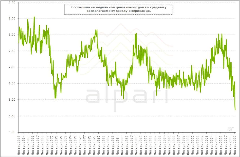 Но у меня есть даже более интересный график — отношение стоимости нового дома к располагаемому доходу американца: