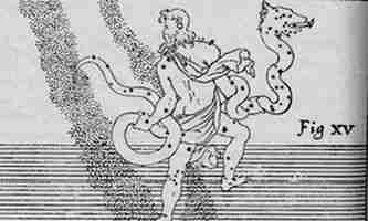 Рис. 132. Созвездие Человека со Змием (Змиедержца) на Млечном Пути. Средневековая книга «Astrognosia», XV век. Книгохранилище Пулковской обсерватории (Санкт-Петербург). См. также [1544], т.1, с. 218, илл. 57.