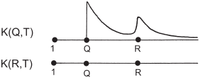 а) Если две летописи (текста) X и Y заведомо зависимы, — то есть описывают один и тот же «поток событий» исторического периода (A,B) одного и того же государства, — то графики объемов летописей X и Y должны одновременно достигать локальных максимумов (делать всплески) на отрезке (А,В). Другими словами, годы, «подробно описанные в летописи Х», и годы, «подробно описанные в летописи Y», должны быть близки или совпадать.
