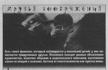 Есть такой феномен, который наблюдается у маленьких детей: у них появляются придуманные друзья. Психологи находят разные объяснения: одиночество, нехватка общения и родительского внимания, вытеснение каких-то эмоций и желаний, бегство от ответственности или чувства вины.