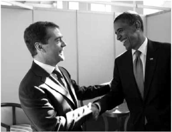 В своих инаугурационных речах Вы оба поклялись следовать идеалам мира, свободы и демократии, особенно подчеркнув «высшую ценность» прав и свобод человека. Речь российского Президента, произнесённая около года назад, в почти докризисные времена, была более оптимистичной. В ней, в частности, утверждалось, что «за последние восемь лет был создан мощный фундамент для долгосрочного развития, для просто десятилетий свободного и стабильного развития. И этот уникальный шанс мы должны максимально использовать, чтобы Россия стала одной из лучших стран мира, лучшей — для комфортной, уверенной и безопасной жизни наших людей: в этом — наша стратегия, и в этом — ориентир на годы вперёд». В речи американского Президента, произнесённой не так давно, уже в условиях кризиса, утверждалось, что, несмотря на кризис, Америка остаётся