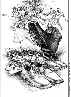 Гена Батурин старому башмачнику понравился. Скромный мальчик, не подумаешь, что чемпион России. И улыбка у него хорошая, застенчивая оказалась. Вот Ашот Каренович и взялся за новую для себя работу. Когда он мальчика смотрел, сразу отметил, что у него голеностоп слабый, надо было подумать, что сделать, чтобы не только мощности бегу прибавить, но и сустав укрепить. Вот и сидел он днями, разглядывая задумчиво беговую шиповку, и напевал «На дальнем горном озере…», чтобы думалось лучше. Оно, конечно, поторапливаться следовало, спортсмен к новой обуви еще привыкнуть должен, а тут очередной чемпионат мира на носу. Но Ашот Каренович хорошо знал: если поспешить, можно не только всех насмешить, можно человека подвести. А тут и решение постепенно вырисовывалось — боковины чуточку ужесточить, а язычок удлинить и шнуровку на две дырочки больше сделать. Вроде и небольшие изменения, а уверенности в своих силах они мальчику обязательно должны были добавить и от случайной травмы предохранить.