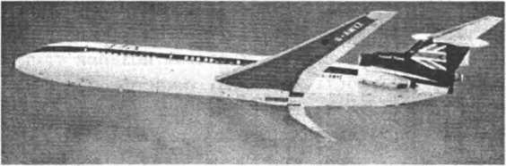 «Трайдент» в посадочной конфигурации — мощная механизация крыла выпущена на максимальный угол