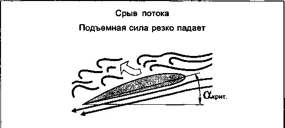 Когда угол атаки достигает значительной величины, становится критическим, характер обтекания крыла изменяется. Сходящий с него воздушный поток перестает быть плавным, ламинарным. Он отрывается от верхней поверхности крыла, и начинает завихряться, становиться турбулентным. В этом случае подъемная сила крыла резко падает, и самолет начинает терять высоту или срывается в штопор.