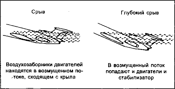 Однако любые достоинства есть лишь обратная сторона недостатков. И «Трайдент», и другие машины, построенные по аналогичной схеме, имеют общий и очень серьезный изъян: при выходе самолета на срывные режимы возникает опасность попадания двигателей и горизонтального оперения в возмущенный поток, сходящий с крыла.