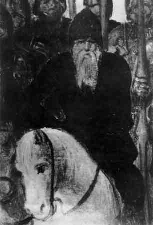Рис. 2.12a. Фрагмент картины Питера Брейгеля Старшего «Избиение младенцев в Вифлееме». Предводитель солдат Ирода представлен здесь как казак-ордынец с длинной бородой и усами. Полностью эта картина воспроизведена на цветной вклейке. Взято из [1053:1], илл. 66.