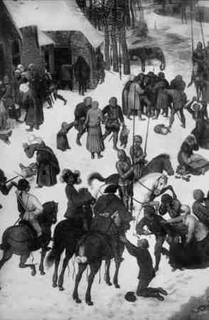 Рис. 2.12b. Фрагмент картины Питера Брейгеля Старшего «Избиение младенцев в Вифлееме». Солдаты Ирода показаны здесь как средневековые рыцари, в тяжелых латах, в шляпах с перьями. Взято из [1053:1], илл. 67.