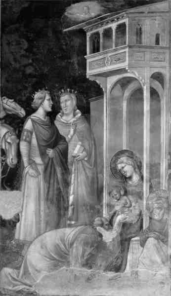 Рис. 2.13. Поклонение Волхвов. Фреска Таддео Гадди. Якобы около 1330 года. Обратите внимание, что один из Волхвов, а именно, Мельхиор, является женщиной. На картине она стоит справа от Валтасара. Более подробно об этом интересном факте см. нашу книгу «Библейская Русь», гл. 3:1. Взято из [654:0], с. 262, илл. 155.