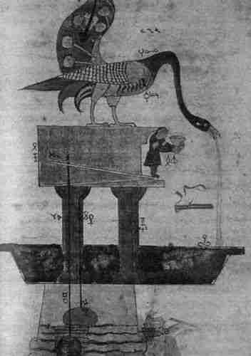 Рис. 27. Водяные часы, изображенные в «Книге машин» якобы 1264 года. Взято из [1075:1], с. 184.