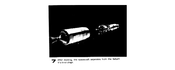 7. После стыковки космический корабль отделяется от третьей ступени Сатурна.