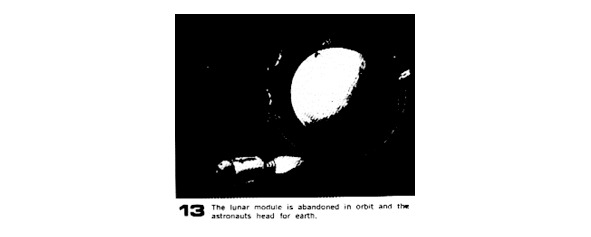 13. Лунный модуль брошен на орбите, и Космонавты повернули к земле. Больше нет ненужных, захламляющих пространство вещей, если мы считаем все, что есть на фото.
