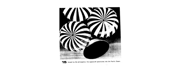 15. КМ замедлился в атмосфере, «космический корабль» на парашютах падает в Тихий океан. Без комментариев… на картинке выше, достаточно доказательств.