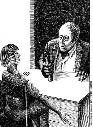 На мое «здравствуйте» он не ответил, просто плюхнулся на стул и, собрав в морщины лоб, уставился на меня. Он не моргал, и бровей у него как будто не было.