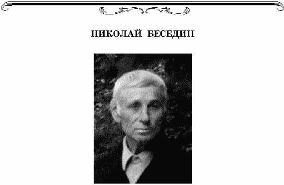 БЕСЕДИН Николай Васильевич родился 16 января 1934 года в Кемеровской обл., прииск Террасный. В 14 лет ушёл юнгой на флот. В 1963 году закончил Литинсти-тут. Работал в Институте ядерной физики имени Курчатова, НИИ сантехники, Госплане СССР. Член Союза писателей России. Лауреат Всероссийских литературных премий имени Н. Заболоцкого, И. Бунина. Автор 14 сборников стихов и трёхтомника "Избранное". Живёт в Москве