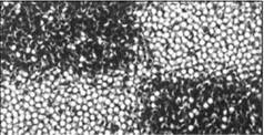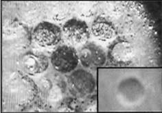 Черно-белые шарики, изготовленные в лаборатории «Ксерокса», под микроскопом.